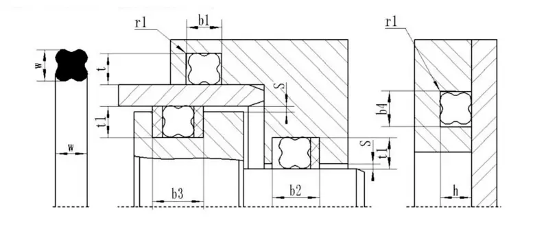 1. Статическое уплотнение или возвратное линейное движение: (1) Окрашивание отверстия: внутренний диаметр кольца в форме звезды должно быть совместимо с канавкой или менее 2% от нижнего диаметра канавки. Поскольку предварительная сжатия сила, генерируемая до сжатия, может эффективно предотвратить скручивание и прокатывание уплотненного кольца в форме звезды. (2) Уплотнение вала: внутренний диаметр кольца в форме звезды должно быть равным или, соответственно, больше, чем внешний диаметр вала примерно на 0,2 ~ 0,3 мм, или оно может быть примерно на 1% больше, чем внешний диаметр вала. В результате кольцо уплотнения будет проще установить и иметь более длительный срок службы.