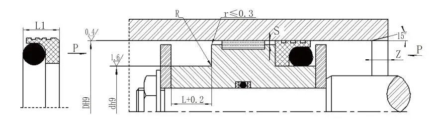 Примечание: 1. Для цилиндров диаметром ≤ 30 мм рекомендуется конструкция с открытой канавкой.
