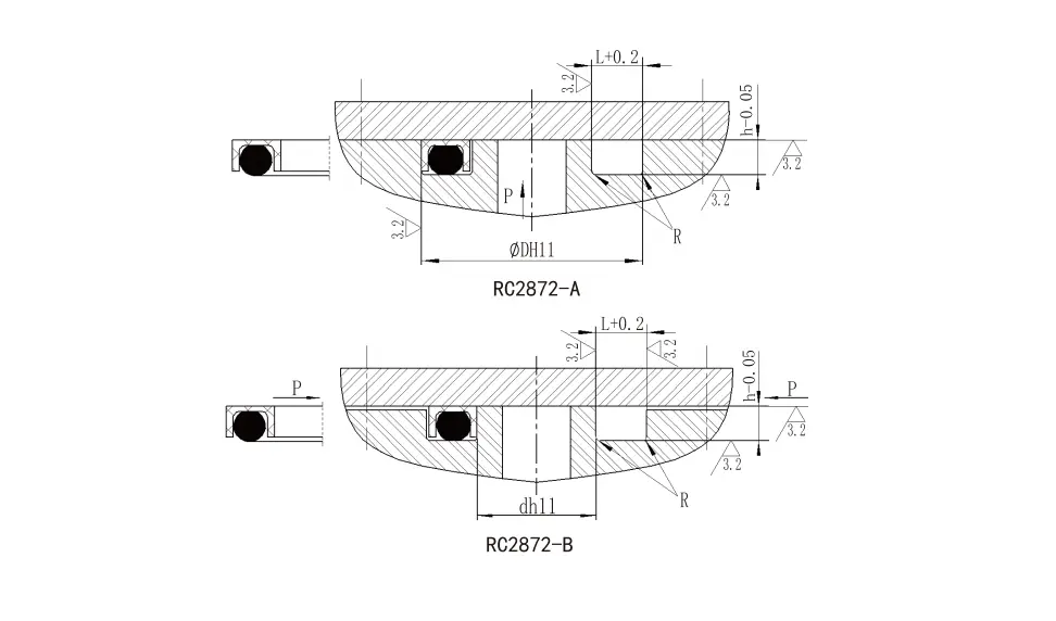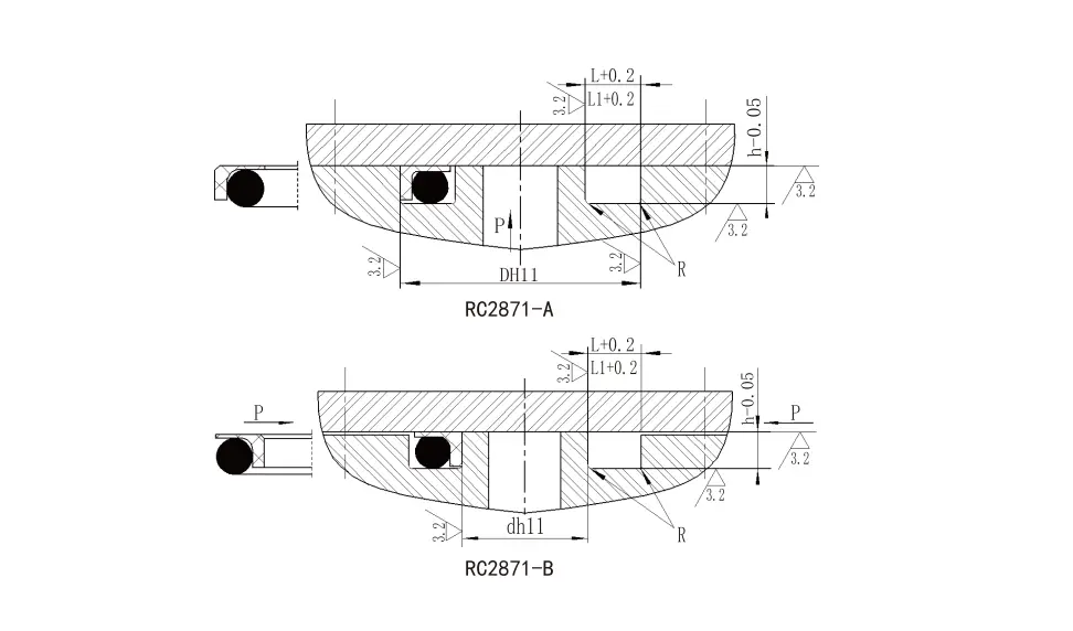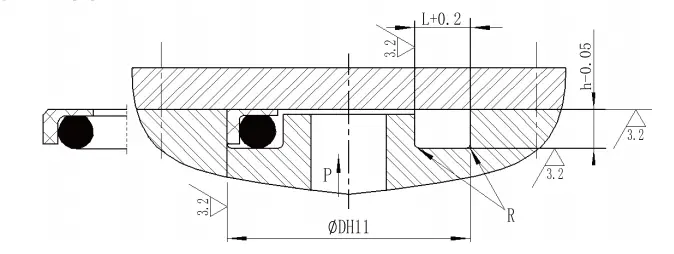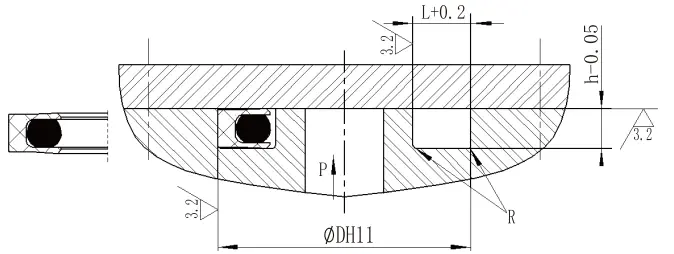 Внешний диапазон диаметра DH11 | Глубина канавки h-0.05 |