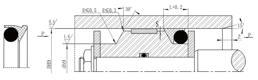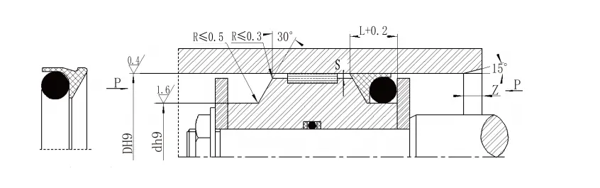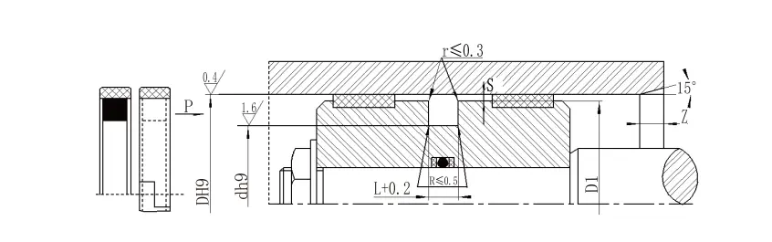 | Примечание: 1. Для давления> 60 МПа в области корня уплотнения используется соответствующая допуска H8/F8, а уплотнение уплотнения давления <0,05. 2. Для диаметров цилиндров> 30 мм его можно установить в закрытых канавках. Пожалуйста, проконсультируйтесь с нашей компанией. | ||||||||||