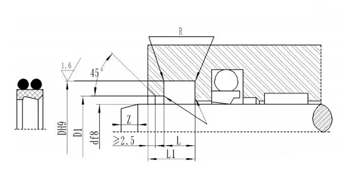 RCF01 и RCF02 представляют собой двусторонние пылевые уплотнения, состоящие из кольца с двойным плавным уплотнением, заполненным анти-носовым материалом PTFE и О-образным резиновым кольцом. Уплотнительное кольцо обеспечивает силу предварительной нагрузки, чтобы компенсировать износ кольца PTFE. RCF01 подходит для тяжелых случаев, таких как пыльная или холодная среда и высокочастотные возвратные движения. Разделенные канавки должны использоваться для диаметров вала менее 30 мм. RCF02 подходит для взаимного движения, качания или условий спирального движения.