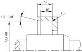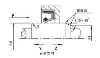 2. Конструкция вращающегося вала и канавок. Поверхность вала должна быть гладкой и без заусенцев. Спиральные следы механической обработки могут создавать насосный эффект, приводящий к утечкам. Рекомендуется отшлифовать место установки сальника до шероховатости поверхности Ra0,1-0,5 мкм, которая становится более гладкой с увеличением скорости. Для удобства монтажа и демонтажа вал и пазы должны быть выполнены с фасками или закругленными краями. См. рисунки 1 и 2.